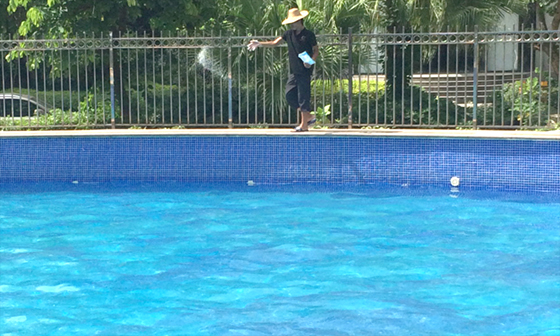 晚上閉館后只投加1公斤或2公斤復效清消毒劑進行殺菌消毒處理,每天做消毒殺菌處理按照這個用量投加即可,遇到特殊狀況比如泳池泳客多、下雨天氣等可根據現狀適當增加用量,無論泳池使用什么消毒劑都需這樣處理以徹底達到藥效。
