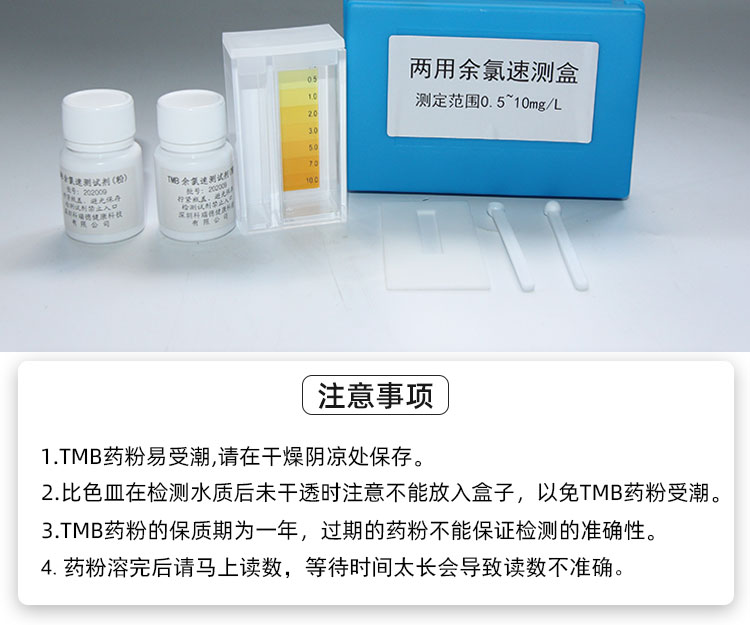 2、比色皿在檢測水質后未干透時注意不能放入盒子,以免TMB藥粉受潮。