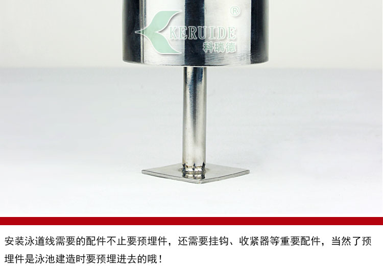 安裝泳道線需要的配件不止要預埋件,還需要掛鉤、收緊器等重要配件,當然了預埋件是泳池建造時要預埋進去的哦!