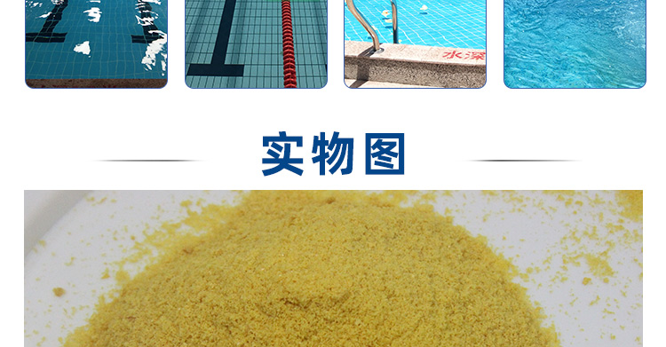 所以使用聚合氯化鋁,對泳池水質由于懸浮物,藻類和其它雜質等引起的渾濁有明顯的凈化作用。