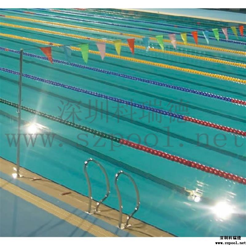 仰泳標志桿:屬于游泳池比賽用品,也叫仰泳標志線或仰泳轉身標志線,一套仰泳標志線由兩根不銹鋼插桿(仰泳返回線)及其預埋件和一條掛滿彩色小旗的繩子組成。