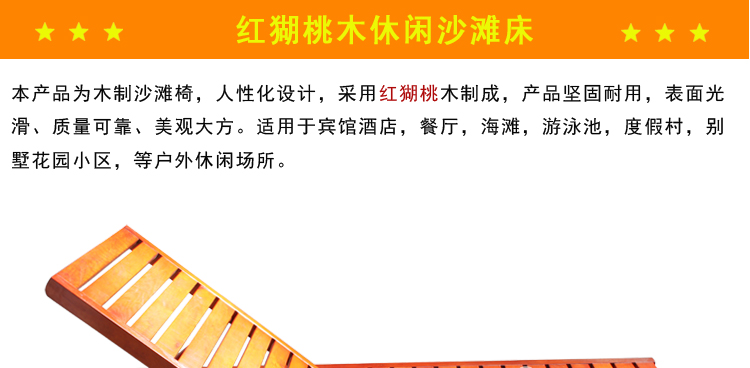 木制沙灘床,用于游泳池場所及海灘等游泳場所的休閑躺椅,屬于游泳池休閑用品的一種。一般叫法為沙灘床,也叫沙灘躺椅,沙灘椅,游泳池沙灘床,游泳池沙灘椅。?適用于賓館酒店,餐廳,海灘,游泳池,度假村,別墅花園小區,等戶外休閑場所。