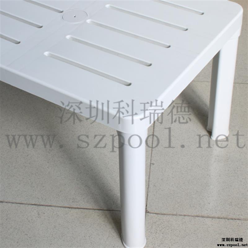 用于游泳池,游泳館及海灘等游泳休閑場所,屬于游泳池休閑用品的一種.一般叫法為休閑茶幾,也叫:塑料茶幾,環球牌茶幾,游泳池休閑茶幾,戶外家私,休閑桌椅
