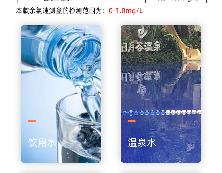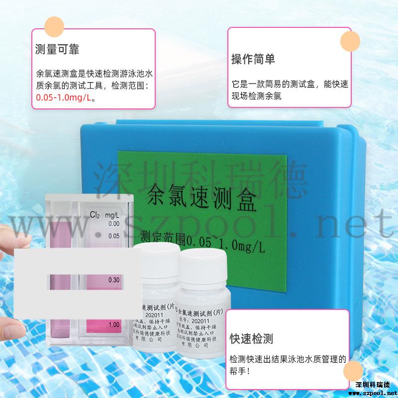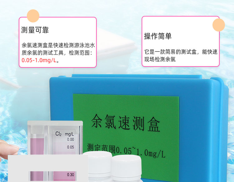 本余氯速測盒用于游泳池水質快速檢測的檢測盒,檢測范圍:0.05-1.0mg/L。其操作簡單、測量數值可靠、快速,是維護游泳池水質的工具。
