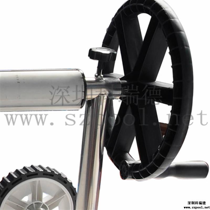 保溫膜收膜車:用于收放泳池保溫膜的。本款保溫膜收膜車采用鋁合金材質制作,耐腐蝕,使用壽命長。造型簡單,使用方便。