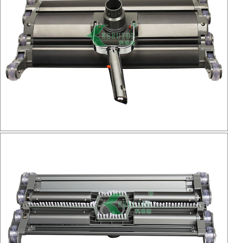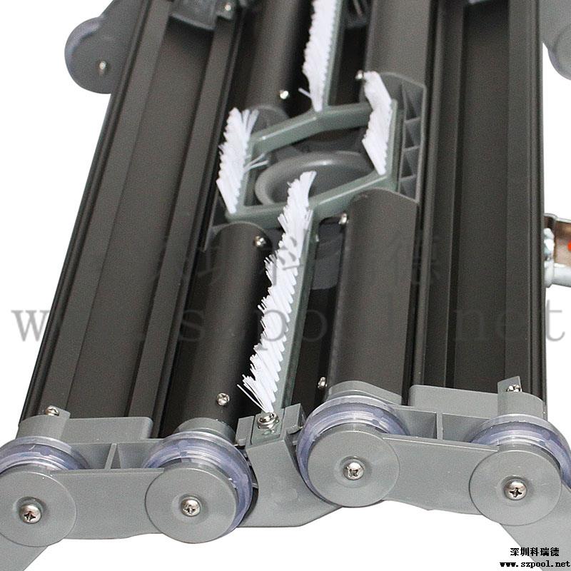 2,特殊設計的輪子:外面的四個輪子往上翹約45°,可以從池底爬行到池壁,且利于吸池壁與池底連接處的的臟物。