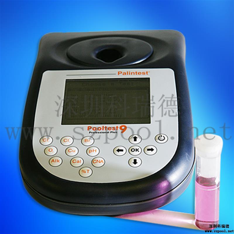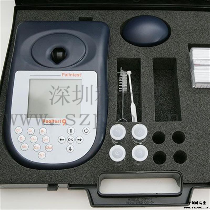 標準的Pooltest 9檢測套件包含一臺光度計主機和一只便攜式手提箱,