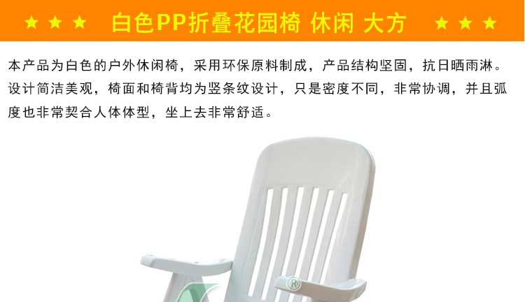產品特點:本折疊花園椅,設計美觀,使用舒適,搬運方便等優點。