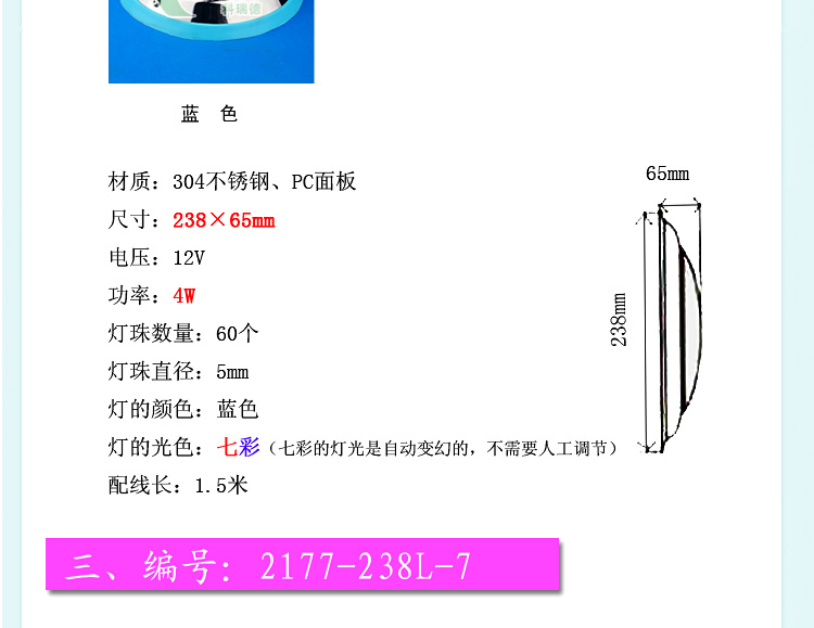 顏色:七彩、單色(紅/藍/綠/黃/白)