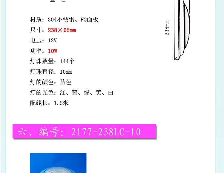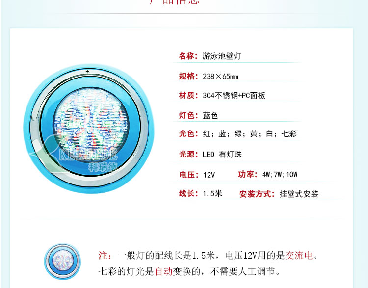 LED泳池池壁掛燈,采用LED燈泡,具有節能減排的優點,想要節省成本,想要節約能源,則本產品是泳池管理者的理想選擇。