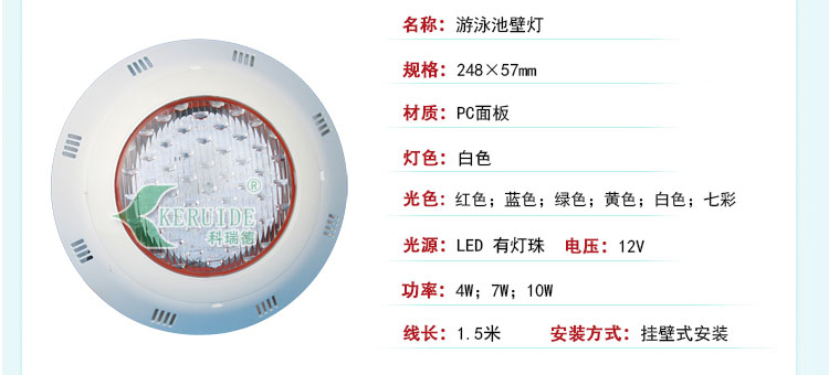 產品名:泳池掛燈,池壁掛燈,水下燈材質:PC面板
