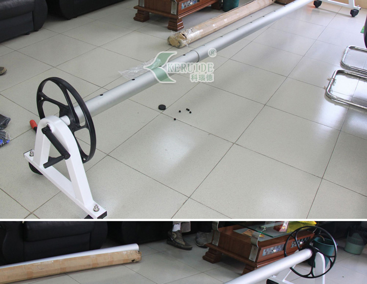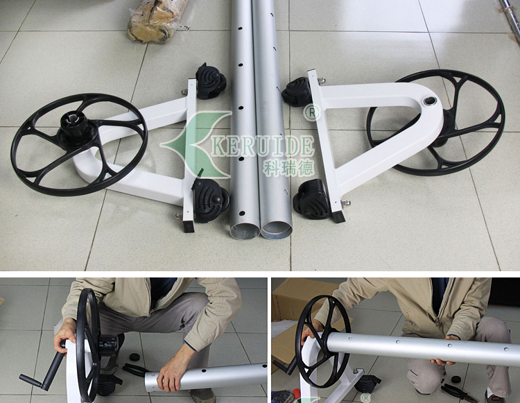 保溫膜收膜車:用于收放泳池保溫膜的。本款保溫膜收膜車采用強韌鋁合金制成,質量可靠,耐腐蝕,使用壽命長久。造型簡單,使用方便。