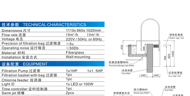 【應用范圍】:適合小型泳池,溫泉,桑拿,按摩池等專用一體化過濾壁掛式設備。一般200立方以下,特別適合于小型私家泳池。???