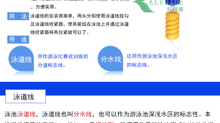 螺旋型游泳池泳道線,也叫分水線,也可以作為游泳池深淺水區的標志性。