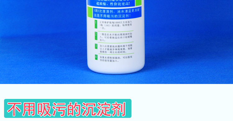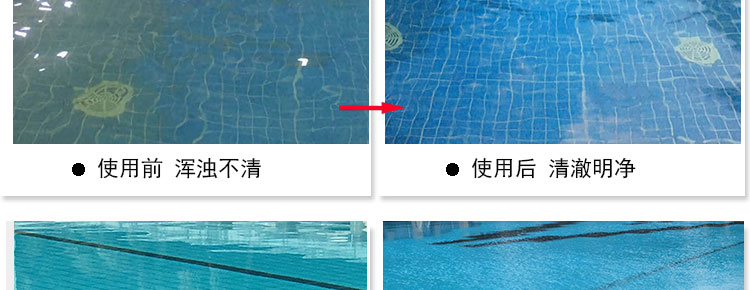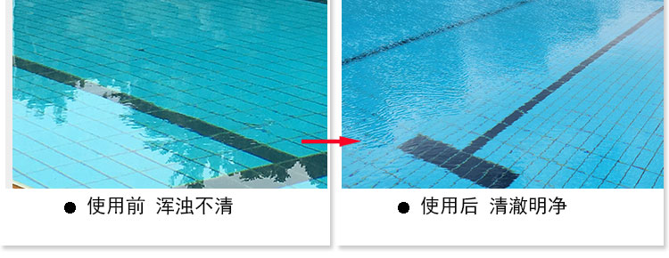 注意:使用此澄清劑,同時需要打開循環過濾系統,這樣才能達到效果。如果沒有循環設備的泳池,則建議不使用此款澄清劑??捎霉腆w的沉淀劑。