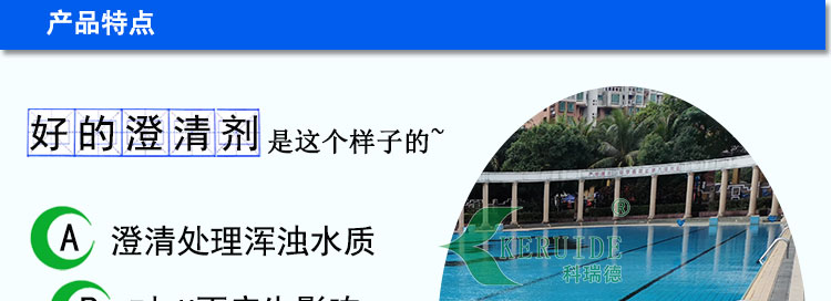 科瑞德澄清劑是一種完全溶于水的DMDAAC聚合物,又名絮凝劑,凈水劑。是為泳池和娛樂用水的澄清處理而設計的澄清劑,使用中不產生沉淀物,所以用后無需吸污,簡單方便。