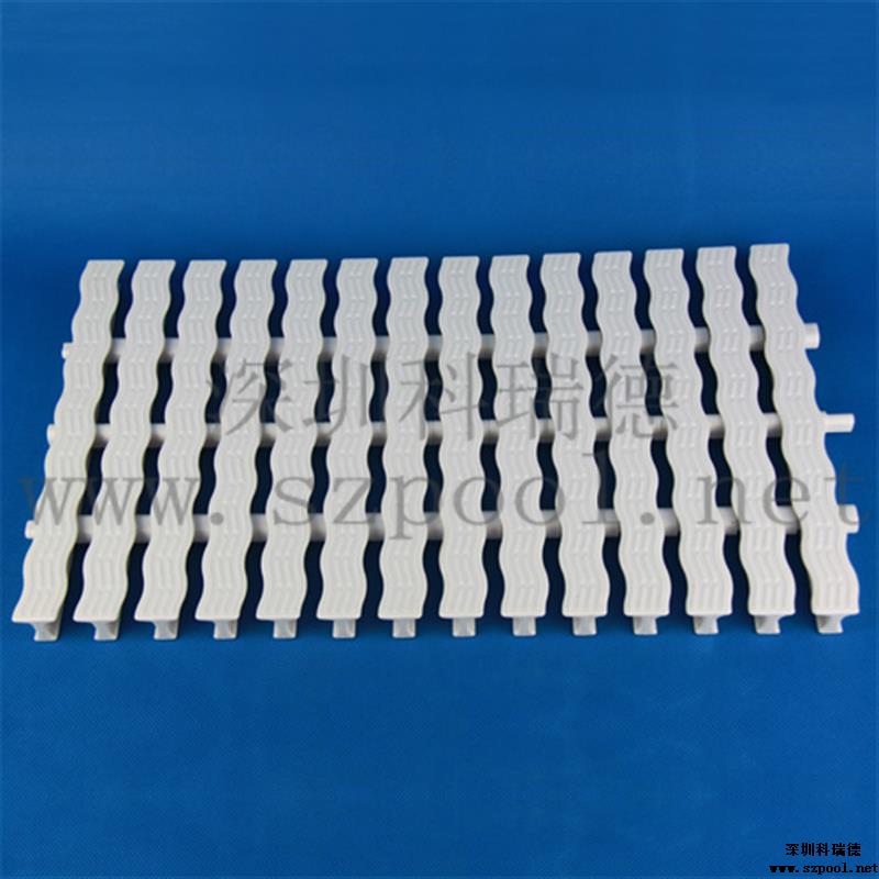 游泳池格柵是作為游泳池四周排水溝的塑料蓋板,既可以起到排水功能,同時可以方便人們行走,并具有防滑的效果,是游泳池必不可少的設備。另外格柵表面有波浪形凸紋,可以起到按摩腳底的作用。此格柵不但易用耐用,而且容易清潔,維護方便。并且可以拆卸和拼裝,無需裁剪。
