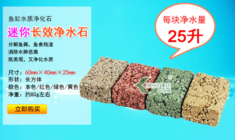 3,建議在40CM以內(水量25L)的魚缸中放入1個長效凈水石。根據魚的數量,增加產品的用量。