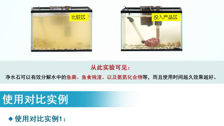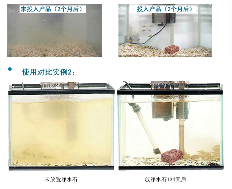 3)本產品為微生物凈水石,從最初投入到形成良好穩定的水質,根據魚的數量和養魚的環境,需要2-3周的適應期。