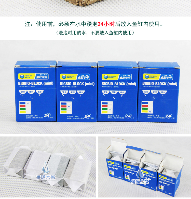 1,使用前,必須將bb菌凈水石在水中浸泡24小時后放入魚缸內使用。(浸泡時用的水,不要放入魚缸內使用)