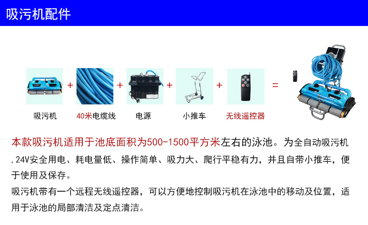 電纜線長達40米,適用于各種類型大中型泳池,使用簡單。