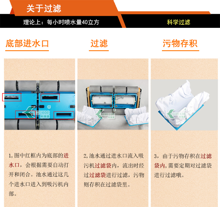 全面清洗:既能清洗池底污物,又能清洗池壁污物,還能對泳池水進行過濾。