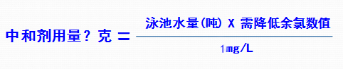 氯中和劑用量=(500方×0.5mg/L)÷1mg/L=250克