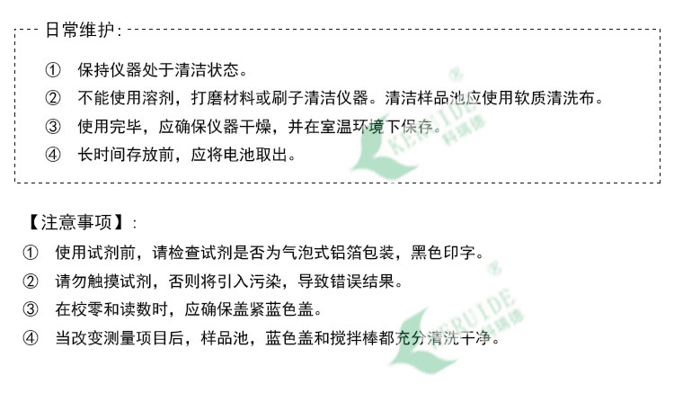 ①保持羅維邦水質檢測儀處于清潔狀態。