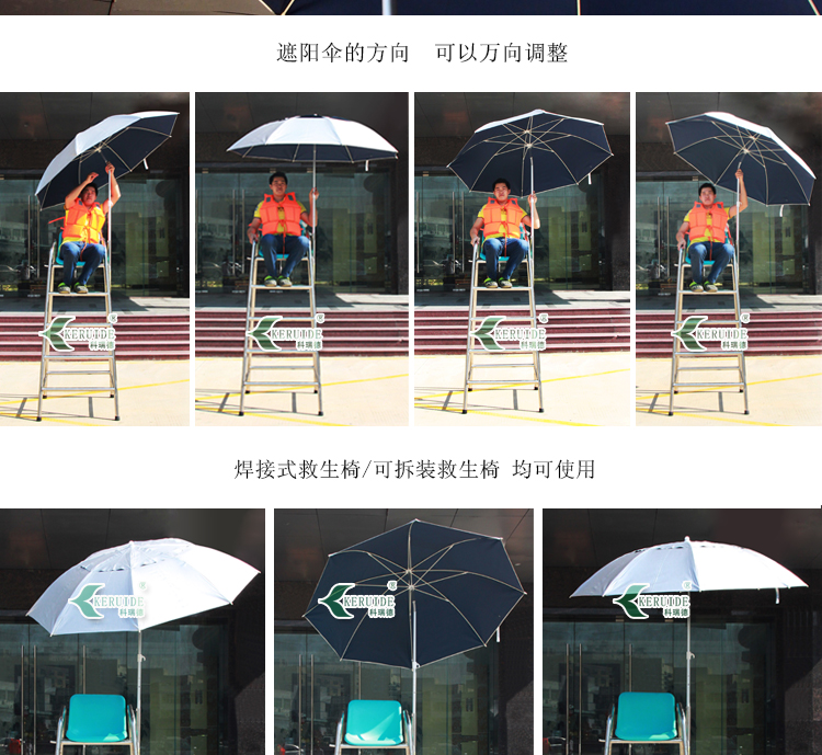 適用范圍:本款太陽傘可安裝于各種款式的救生椅上,泳池救生椅、沙灘救生椅,焊接式救生椅、可拆裝救生椅均可安裝。