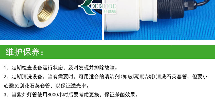 3.當紫外燈管使用8000小時后要考慮更換,保證殺菌效果。