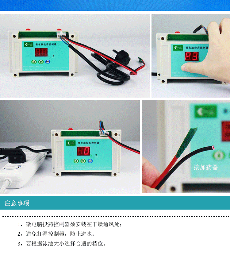 1,微電腦投藥控制器須安裝在干燥通風處;