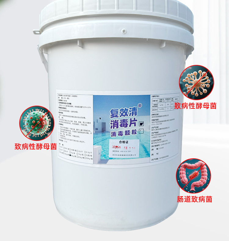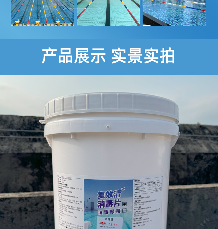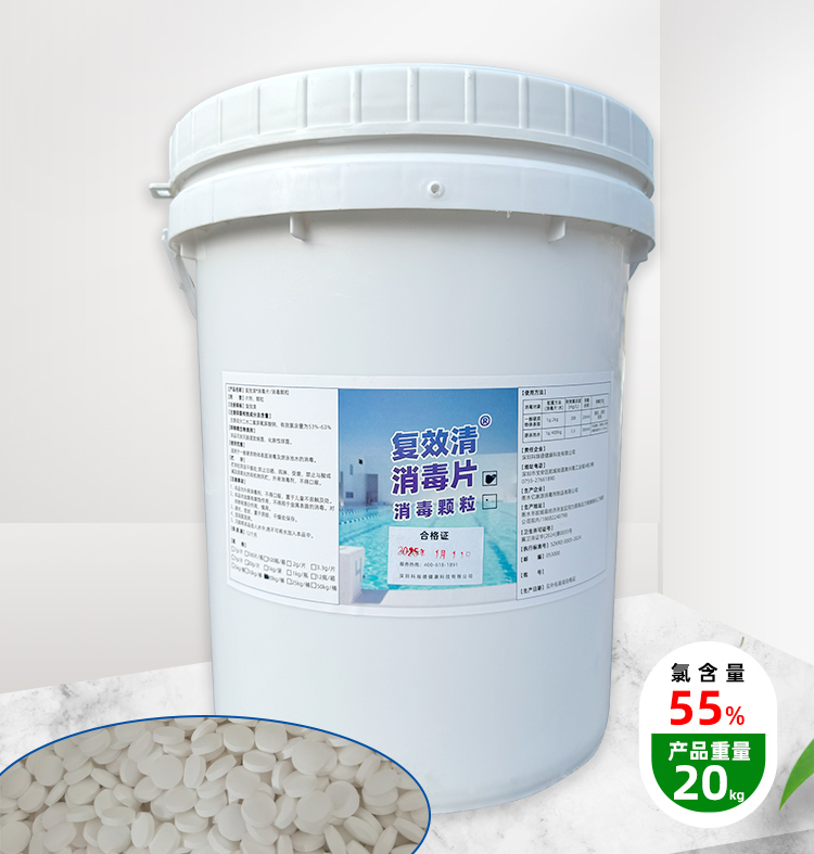 游泳池消毒片有很多種,其中復效清泳池消毒片是以二水二氯異氰尿酸鈉為主要有效成分的游泳池消毒片,屬于游泳池水處理藥劑的一種,有效氯含量≥55%,針對池水殺菌消毒使用,防止水體變壞!