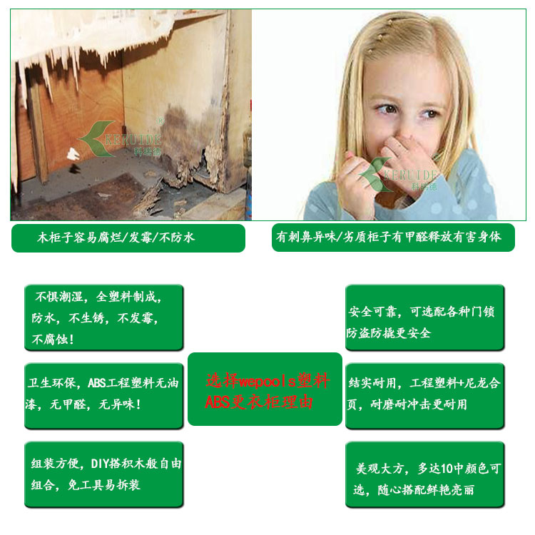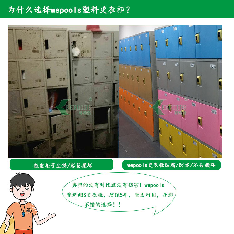 Wepools塑料更衣柜以環保性、安全性、耐用性為向導,以優質、美觀、新穎為特點,采用ABS健康樹脂材料,色彩純正滿足不同行業需求!