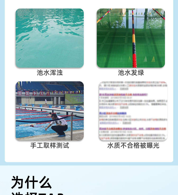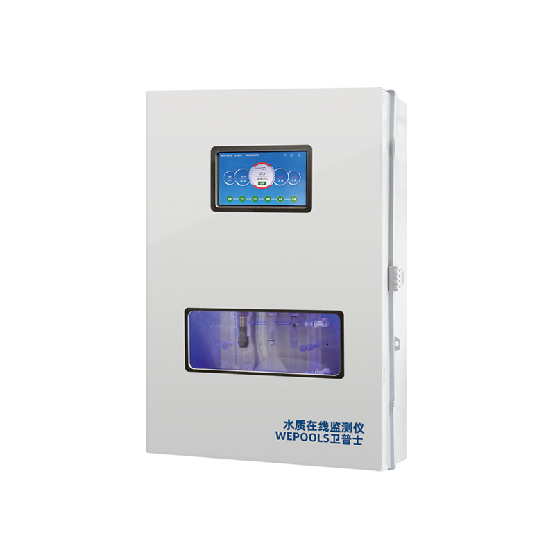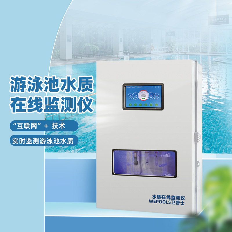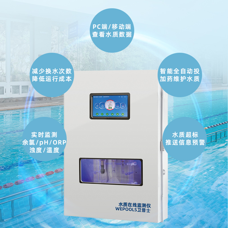 WEPOOLS 衛普士水質在線監測儀是一款實時在線監測泳池水質余氯/pH/濁度/ORP/溫度的監測儀。它與時俱進,符合新國標GB 37487-2019《公共場所衛生管理規范》、GB 37488-2019《公共場所衛生指標及限值要求》、GB 37489.3-2019《公共場所設計衛生規范第3部分:人工游泳場所》等三個國家標準的要求;它自動加(停)藥,保證水質余氯及PH達標,系統自動化加(停)藥控制系統,能根據當前檢測結果,自動調節加藥頻率,可以確保泳池水的余氯不隨天氣、泳客人數等因素變化的影響,保持池水余氯的相對穩定且符合標準,從而保證水質衛生。從根本上解決了A、人工加藥無法準確定量的問題;B、人工加藥無法達到均勻的問題;C、人工加藥無法持續不斷添加的問題;它自動傳輸信息和自動預警,使用單位、衛監部門可隨時掌握水質的動態變化和接收預警,敦促泳池工作人員加強水質管理,確保池水各項衛生指標在國家標準的限值范圍內。;它實現泳客的知情權,社會的監督權,泳池水質各項指標的實時監測結果會傳輸到顯示屏上對外公布,讓泳客對原本摸不著、看不見的水質狀況變為看得到、看得清的、實實在在的數據!