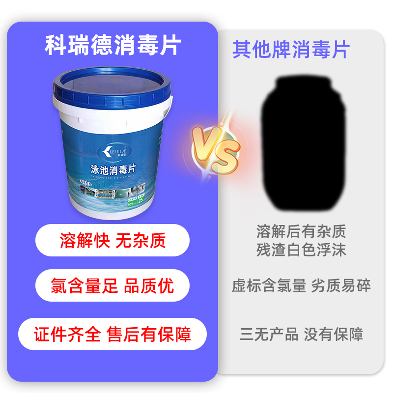 在泳池維護領域,科瑞德泳池消毒片憑借過硬品質與出色效果脫穎而出。每片消毒片,均凝聚先進工藝與嚴格質量管控。