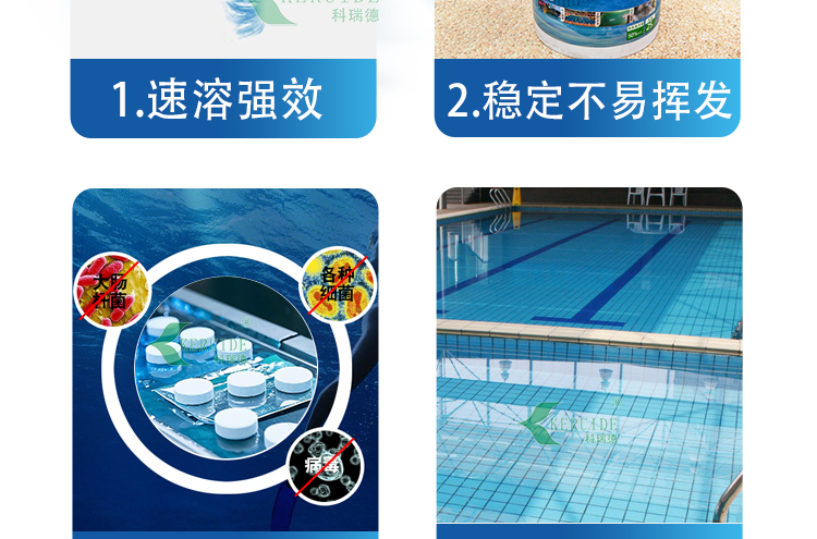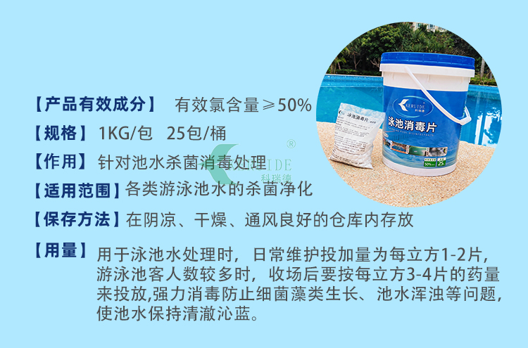 不管是家庭小型泳池,還是商業大型泳池,科瑞德泳池消毒片都是凈化水質的優質之選!