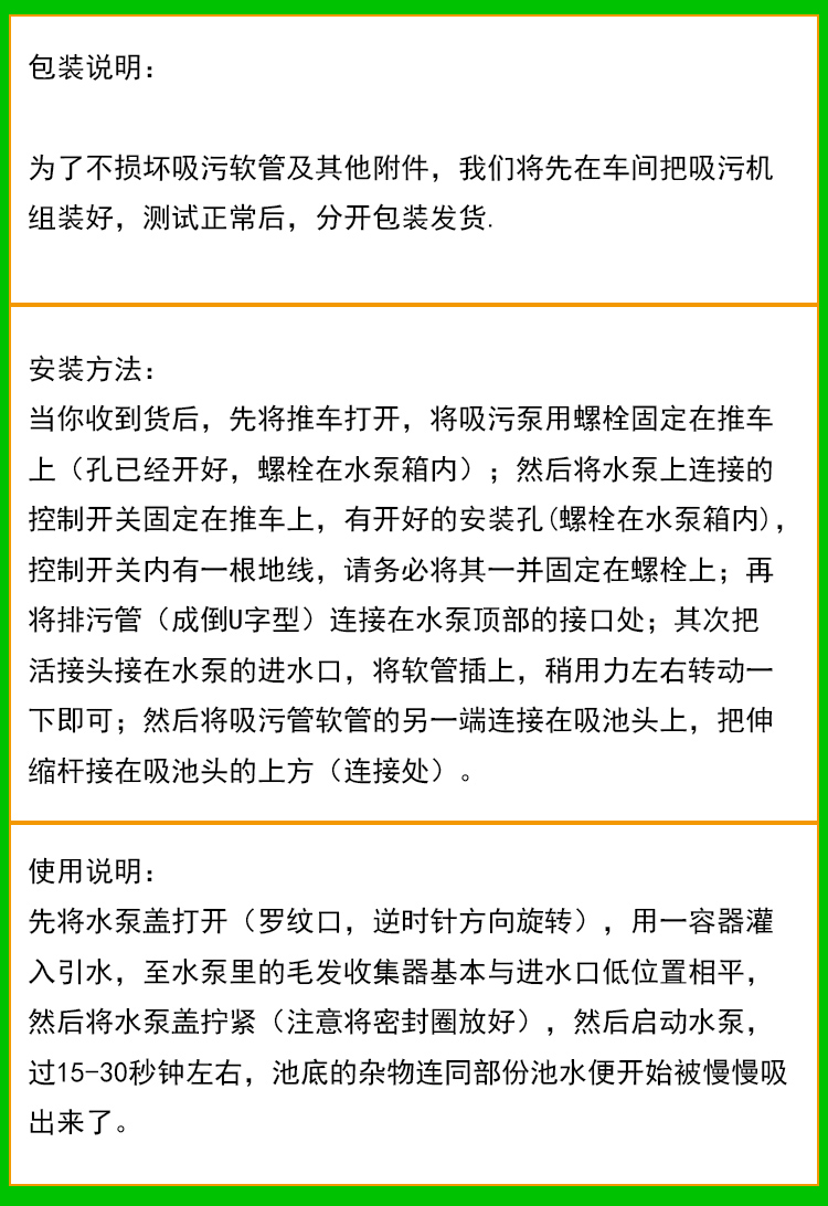 本產品為愛克牌吸污機,AQUA“愛克”泳池設備源自意大利,具有三十多年的生產歷史。本產品為手動吸污機,配件我們出廠前已配置并做好部分安裝,客戶也可以根據自己的泳池自由選擇。