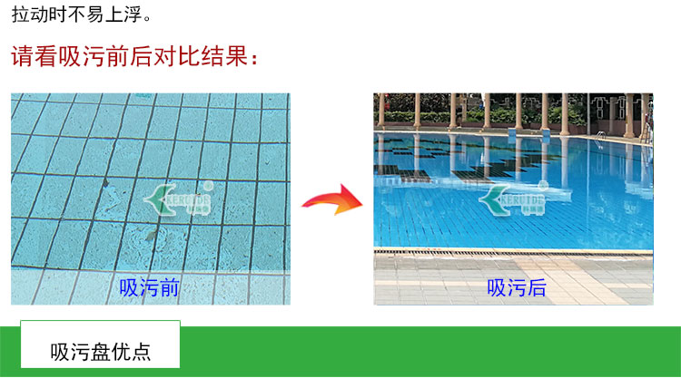 如果你覺得你的吸污盤不夠大,吸污花的時間很多,那么就選擇這種吸污盤吧,它的面積非常大,吸污速度快,可以減少吸污時間。如果你覺得你的吸污盤質量不夠好,怕使用的時間不夠長,那么選擇這款吸污盤吧,它全部由不銹鋼制成,質量有保障,使用壽命更長。如果你覺得你的泳池吸污盤操作不方便,費力,那么選擇這款吸污盤吧,它操作非常方便,同時還帶孔,可以用拉繩式方式操作。如果你覺得你的泳池吸污盤效果不好,也選擇這款吸污盤吧,它獨特的設計使吸污清潔:底部帶毛刷,吸污的同時刷洗池底池壁。