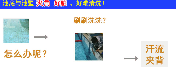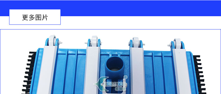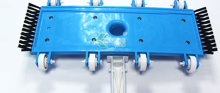 3、側面均帶毛刷,吸污時還可以對池底進行刷洗。(當吸污頭經過池壁臟處,需要先用毛刷先將臟物刷落,然后吸污頭將臟物吸入吸污管,進行過濾。)