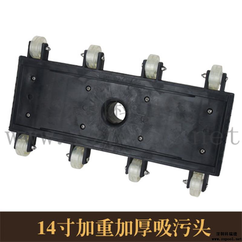吸污頭是游泳池吸污機的主要部件,也叫游泳池吸污頭或是游泳池吸污盤。其規格為14英寸(即36厘米)。主要與吸污泵、吸污管、伸縮桿及吸污機小推車等組合成一套游泳池組合式吸污機,主要功能是用來對游泳池及景觀池、養魚池進行水下吸塵,將池底的臟物吸走,起到清潔池底的作用。用于小型手動吸污機,如1.5匹,2.0匹的wepools吸污機或愛克小型吸污機。