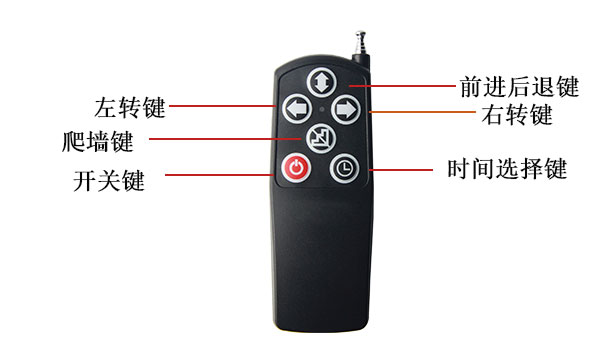 5. 遙控器操作技巧。當機器在前行狀態按一下“前進后退鍵”機器即刻后退運行再按一下“前進后退鍵”機器反向運行。當需要機器轉向時按下“左轉鍵”或“右轉鍵”可通過按下“左轉鍵”或“右轉鍵”的時間長短來控制機器左轉或右轉的角度大小?!芭缐︽I”按下后開啟爬墻功能再次按下為取消爬墻功能?!皶r間選擇鍵”為選擇機器的運行時間?!伴_關鍵”為開啟和關閉機器運行。 注意:操作搖控器時禁止使用指甲或其它尖銳硬物來操作按鍵。搖控器與電控盒的距離不宜太遠建議控制在10米以內確保搖控信號能被電控盒順暢接收。防止搖控器沾水受潮。