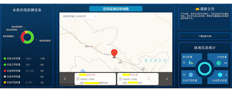 ???? 水質在線監測不僅能改變傳統人工蹲點定時水質監測的煩惱,還能實時監測泳池場所的水質變化,提前預防水質,對不合格的水質進行分析并處理,同時對衛生監督部門的工作提供很好的便利,通過“泳池水質在線監測系統”可以隨時監控游泳場館的各項指標,督促場館加強管理,確保泳池水質衛生,保障市民群眾的身體健康。