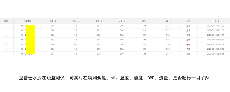 ???? 監測設備,我們以“衛普士水質在線監測儀”作為安裝在泳池的終端設備,這款監測設備能實時測:游離性余氯、pH、溫度、濁度、氧化還原電位(ORP)等五大參數,監測參數符合游泳池水質標準,其通過傳感器將不同的水質指標信息收集并發送出來。