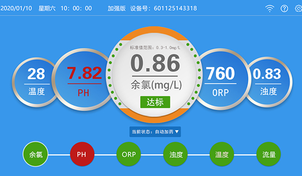 ?????分別有基礎版和加強版,基礎版監測:余氯、pH、溫度;加強版監測:余氯、pH、溫度、濁度、ORP,泳池場所可根據需求選擇型號。
