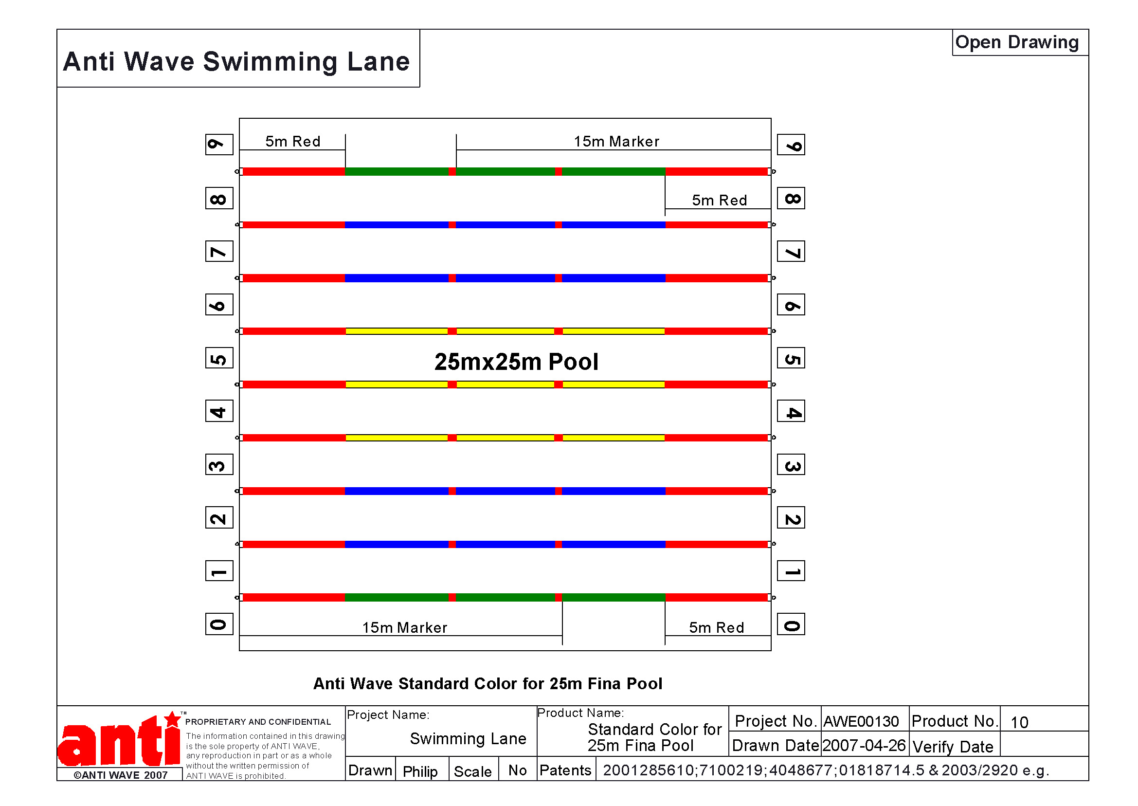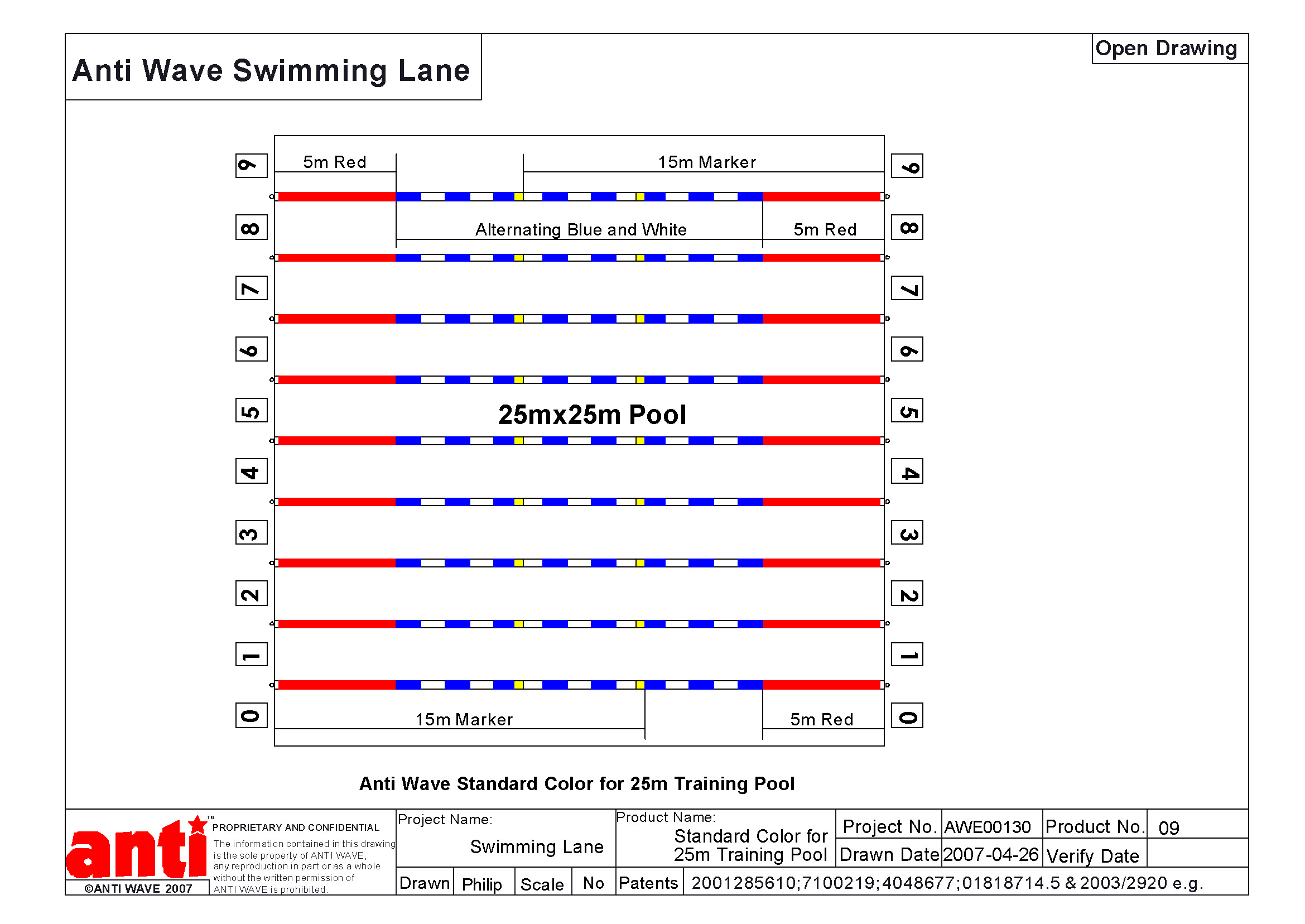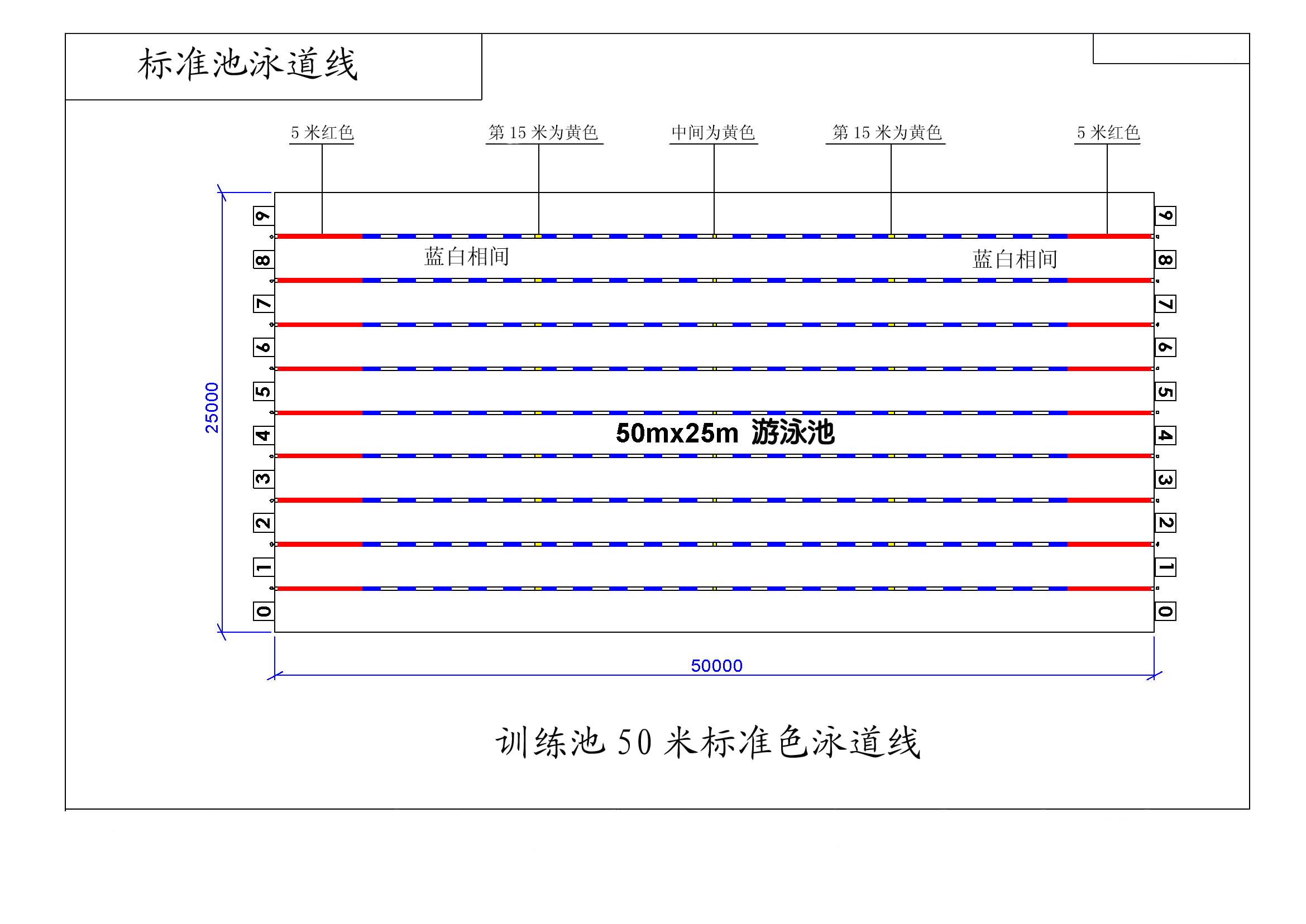 其他泳池泳道線展示(以下的這幾種只要記住一米為10個風車,分清顏色,計算一下就很容易了):