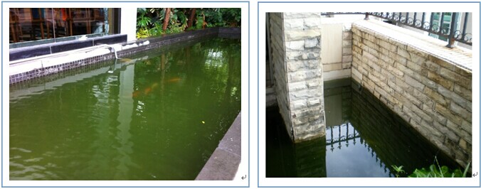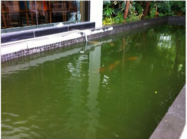 按傳統方法做了魚池景觀的用戶,往往被以上問題搞得暈頭轉向,最后干脆整個關掉不用了。(以下圖片為傳統方法做的水質情況)