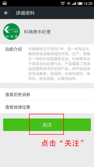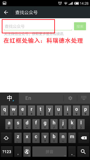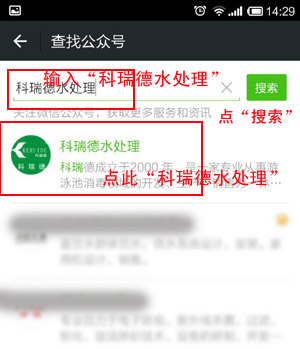 下面以科瑞德水處理為例,來了解下公眾號關注的步驟: