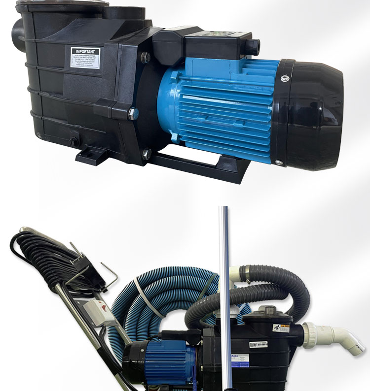 ④ 節水型吸污機:是在組合式岸基型吸污機的基礎上增加了過濾器,使污水經過過濾凈化后返回池子循環使用,適合各種景觀池或魚池吸污。